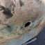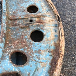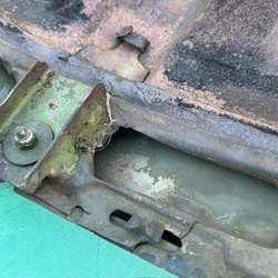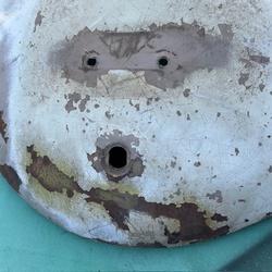 The spring mount has been poorly welded & bolted, however intact . The base also has also been bondo repaired w/ surface rust, the inner original paint so no accident damage