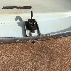 Original inside paint shows no defects or weld repair. No Dents or accident damage, hinges fine, no thru rust @ drain hole.